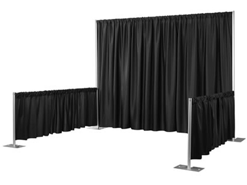 For trade show booths, room dividers, wedding backdrops, stages, construction cover up. 3′, 8′ & 12′ heights. Layout and design service. Colors – black, ivory & royal blue. Meets fire codes.